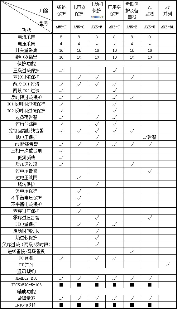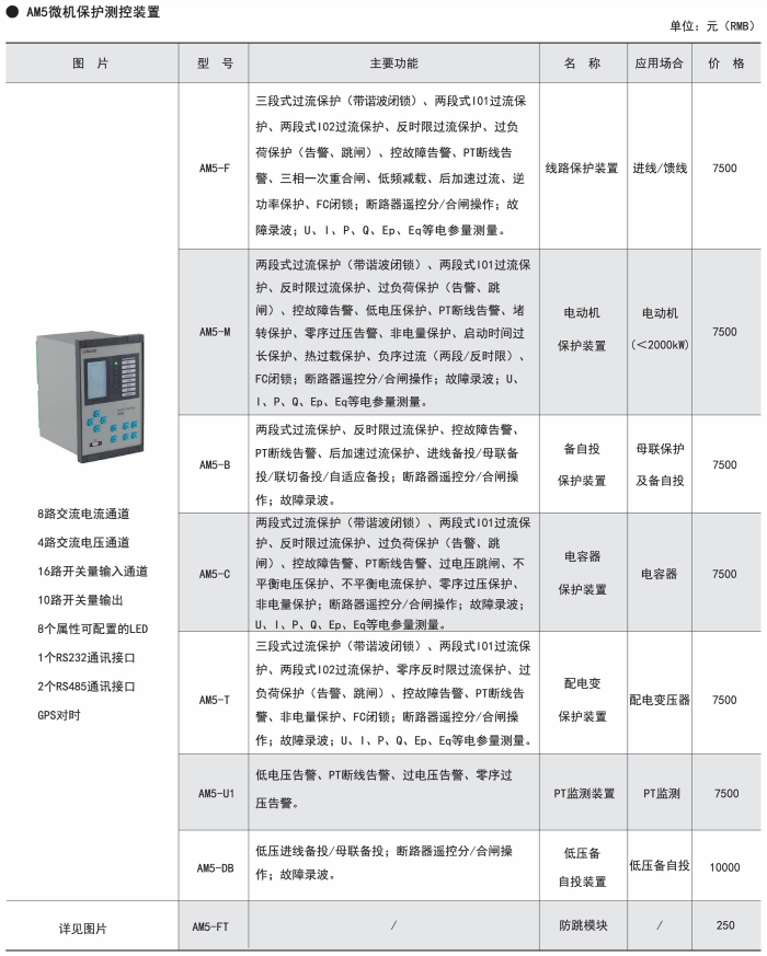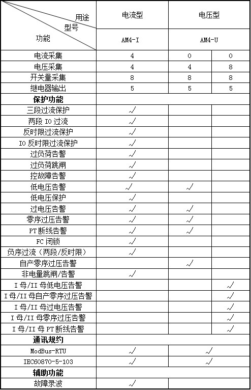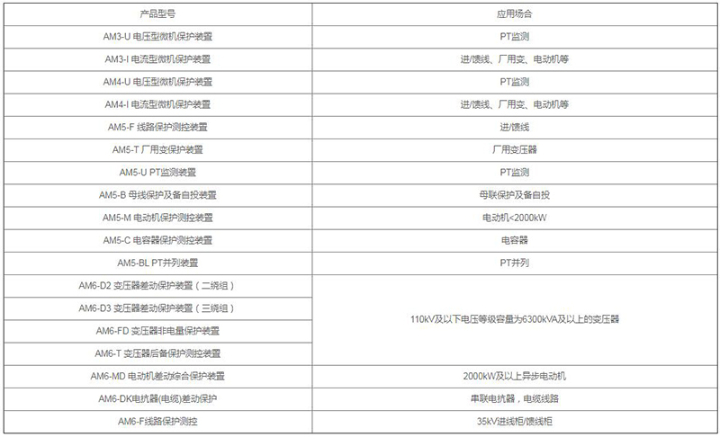 AM系列微機(jī)保護(hù)測控裝置集保護(hù)、測量、控制于一體,適用于35kV及以下電壓等級(jí)的用戶終端變電站(所),可實(shí)現(xiàn)用戶變電站的保護(hù)和測控。