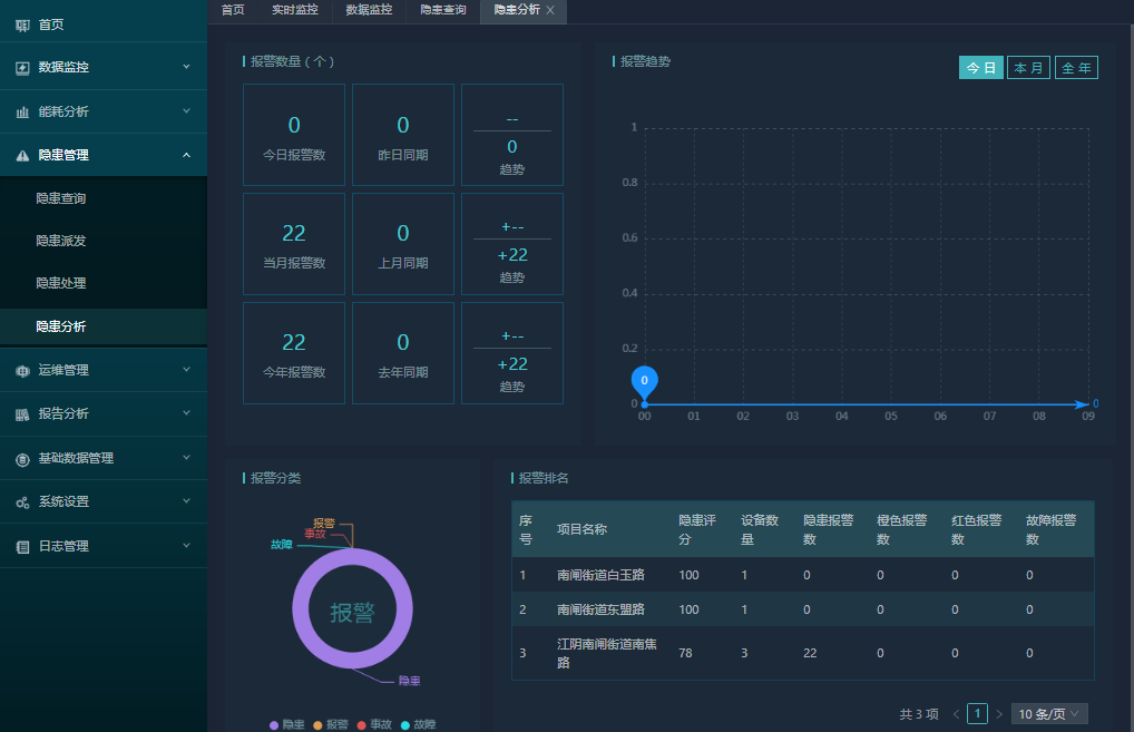 隱患管理包括隱患巡查、隱患派發、隱患處理、隱患分析。